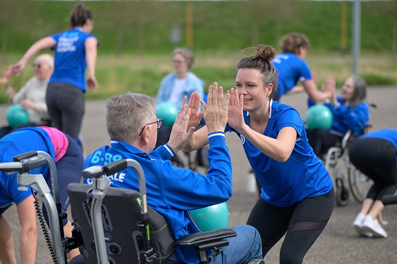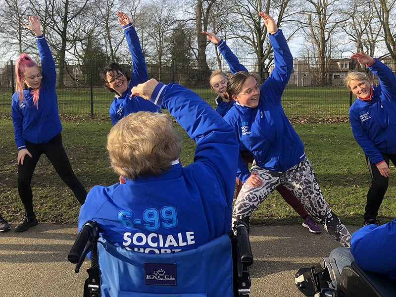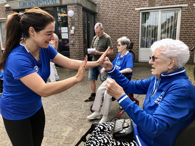Nanja van Dongen is fitness trainer bij Anytime Fitness in Vlijmen. Voor de Sociale Sportschool gaf zij eerder bootcamps op de locatie Nieuwehagen van Brabantzorg in Den Bosch. Zij geeft nu Sociale Sportschool introductie trainingen. “Het is heel leuk om met die ouderen gewoon lekker naar buiten te gaan, zeker als ze de hele dag binnen moeten zitten en niet echt in beweging zijn. De connecties maken vind ik ook mooi. Een oudere mevrouw die in het begin erg koeltjes was en met niemand sprak, kwam helemaal los toen ze een vast sportmaatje had. Ze was heel blij om haar sportmaatje telkens te zien. Dat is een heel mooi verschil.”